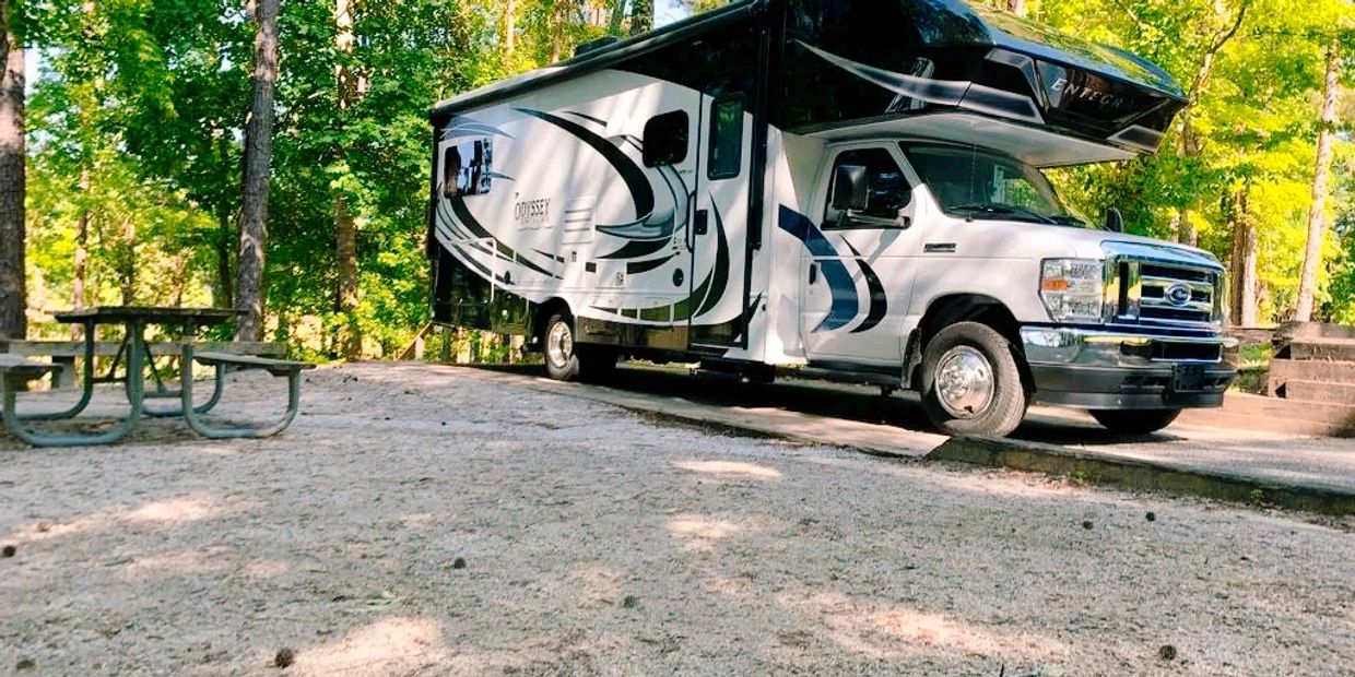 A Class C Motorhome, a 2021 Entegra Odyssey 25R, comes with 6 seat belts, 28' long with a height of 11'5'' and 10' wide. Up to 6 people can sleep comfortably.